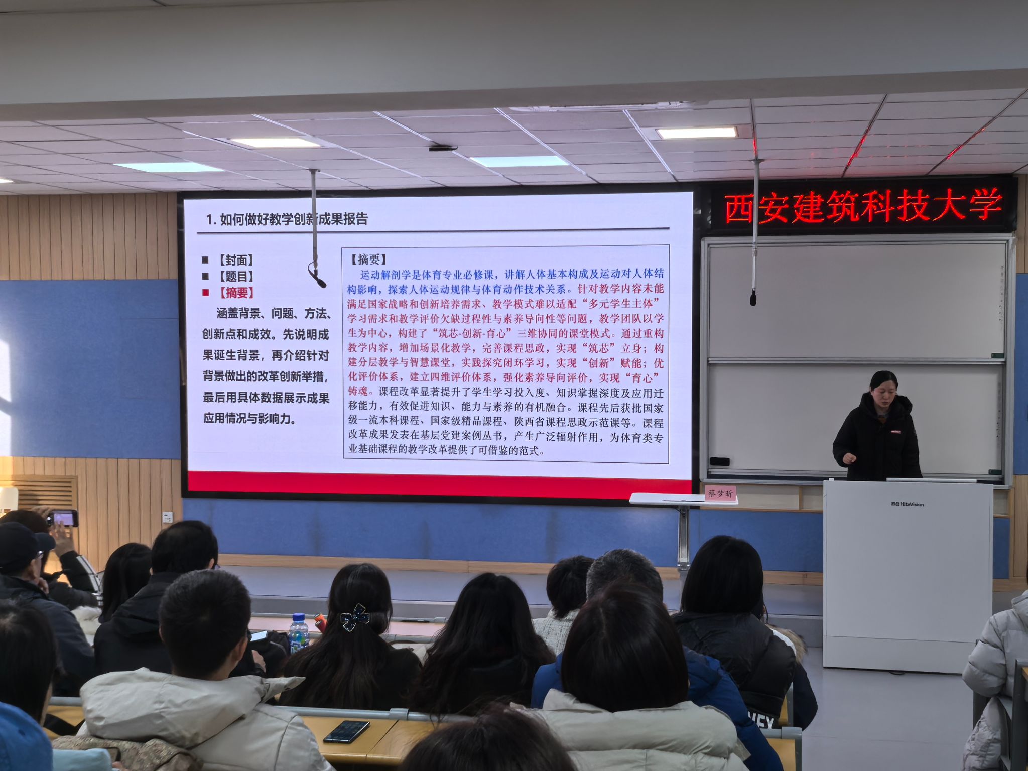 1月21日,陕西高校本科教师教学创新大赛获奖者、陕西师范大学蔡梦昕副教授围绕“思政引领,数智赋能”,分享教学创新大赛备赛策略、课程体系重构路径及数智技术课堂应用技巧,助力教师打造优质课堂。