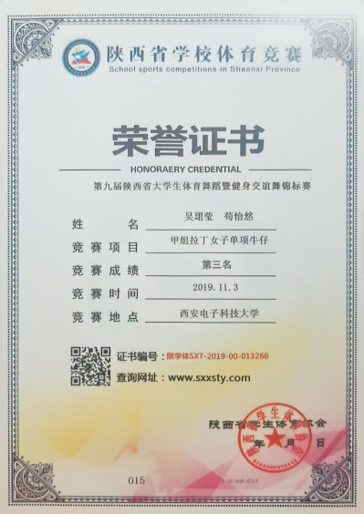 陕西省大学生体育舞蹈锦标赛 | 多次获得单项第一、第二、第三 团体总分第二、第三、第四 |