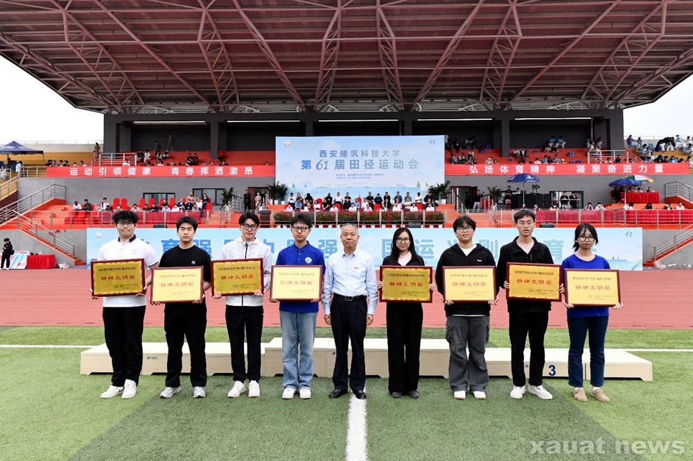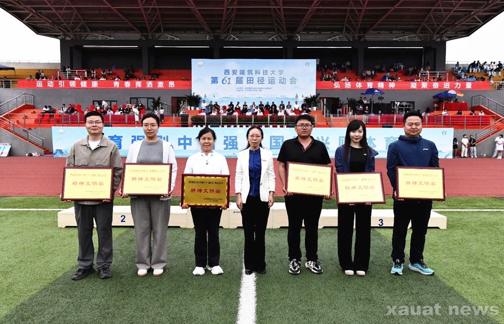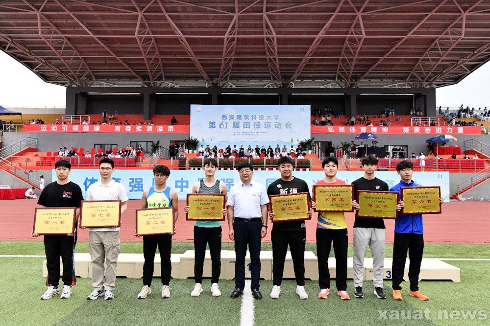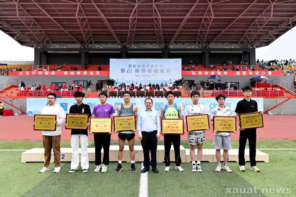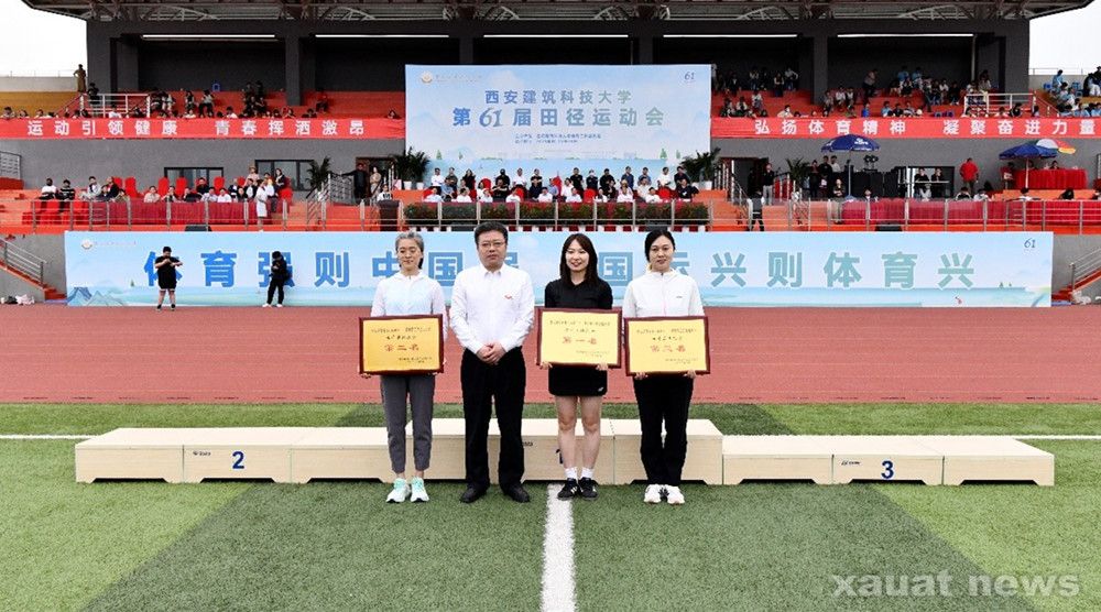 校党委书记朱晓渭为获得学生男女团体总分前八名的代表队颁奖;校长赵祥模为获得学生男子团体总分前八名的代表队颁奖;校党委副书记、纪委书记、省纪委监委驻校纪检监察组组长陈琪为获得教工精神文明奖团体颁奖;校党委副书记梅争利为获得学生精神文明奖团体颁奖;副校长董群雁为获得校第十四届阳光体育活动方案创新设计及展示大赛一等奖、二等奖、三等奖的学院颁奖;副校长雷鹏为教工男女团体总分前三名代表队颁奖;副校长刘晓武为教职工男子组团体前三名代表队颁奖;副校长陈荣为学生女子团体总分前八名的代表队颁奖;副校长高旭阔为教工女子组团体前三名的代表队颁奖。