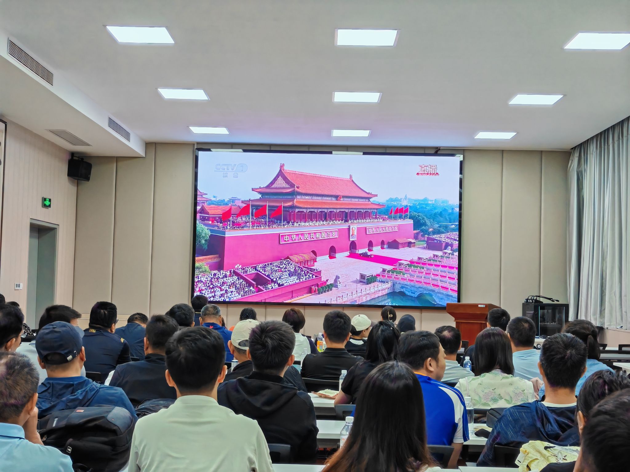 2025年9月3日,北京天安门广场纪念抗战胜利80周年,西安建筑科技大学体育学院教职工集中观看9.3阅兵活动。新中国繁荣富强是对先烈的告慰,应铭记历史,弘扬抗战精神。体育学院教师作为培养体育人才的重任承担者,从抗战历史中汲取智慧和力量,坚定信念,努力学习,提高能力,传承体育精神,为体育强国和民族复兴奋斗。