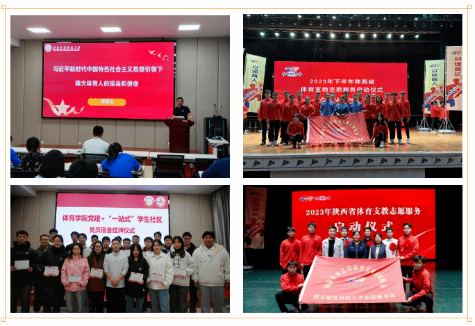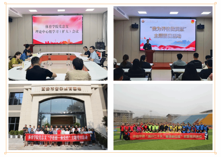 党建+竞技体育。持续推动党建与业务工作深度融合,结合运动队工作特点,学院牢牢把握思想建设这一关键,针对队伍实际情况,将抓好学习教育作为突破口,突出铸魂育人,切实加强思政教育工作。以党建工作引领训练备战,以竞赛成绩彰显党建工作水平,把党建工作同训练备战、日常业务等工作同谋划、同部署、同推进。构建多形式、多层级、广覆盖的三级体育竟赛体系,营造良好校园体育文化氛围。学院规范高水平运动队管理,开展教练员竟聘工作,强化过程管理和监督。建立“赛事临时党支部”及“党员保障服务队”等进一步延伸党建工作的“触角”,扩大学习教育的覆盖“半径”有效提升队伍能力素质,凝聚思想共识,着力营造迎难而上、敢为人先、团结拼搏、自强超越的良好氛围。在陕西省第十七届运动会大学生组比赛中,学校获团体总分第一,男子足球甲组冠军乙组亚军,男子乒乓球甲组亚军、女子篮球乙组亚军等多个奖项,被组委会授予“校长杯"和体育道德风尚奖。参加陕西省第二十六届大学生乒乓球锦标赛暨“校长杯"乒乓球比赛,校长组荣获团体赛第四名,学生组荣获冠军。相关媒体对我校竞赛成绩进行宣传报道,得到学生、教师、广大校友的广泛转载,不断扩大学校影响力。
