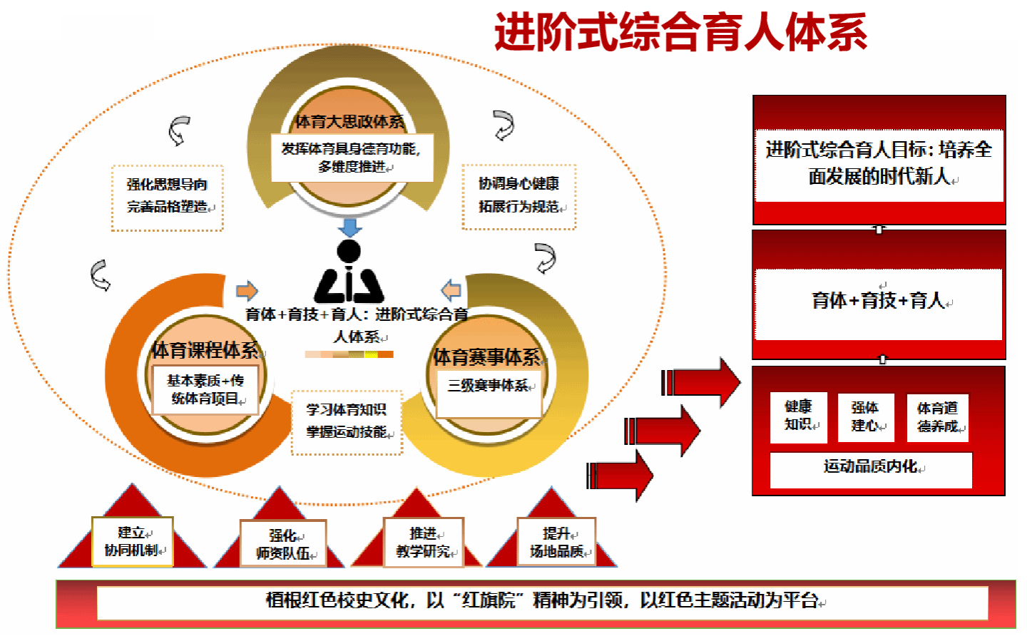 “体育运动红旗院”精神传承行动初见成效。在“体育运动红旗院”精神传承行动中,学院以教学、竞赛双体系发展为依托,赋核心素养之能;以提升体育工作实效为抓手,筑育才成才之基。以体育心、以体强身,促进学生身心健康全面发展。2022年《以体育运动红旗院精神为引领,构建体育文化育人新格局》荣获陕西省高校校园文化建设优秀成果一等奖。《红旗魂》荣获第九届“春天,我与诗相约”诗歌会活动原创诗歌作品三等奖;《红色体育文化润育的历史经验与当代价值》荣获西安建筑科技大学2023年思想政治教育优秀论文特等奖、《中华体育精神融入高校体育课程思政的价值意蕴、元素挖掘及实施策略》荣获一等奖、《建大人的体育记忆——新时代体育运动红旗院精神铸魂工程》荣获思想政治教育优秀案例二等奖。《推动体育文化育人培养高素质人才》相关报道在中国教育报、中国体育新闻网、陕西网、今日头条等平台刊发/转载。